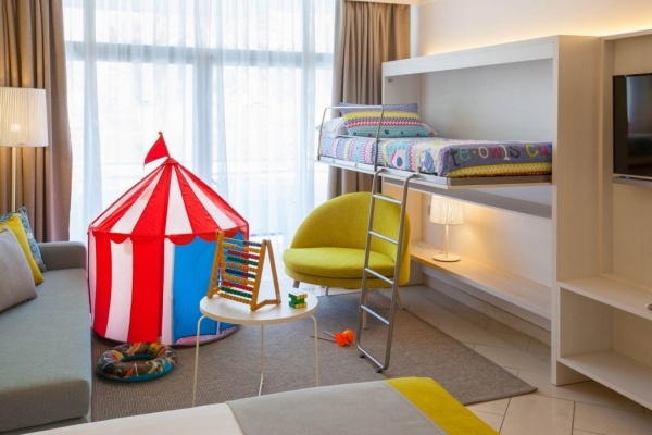 Elhelyezés: o Standard szoba: Alapterület: 36 m2; Kilátás: Kert vagy kert/medence vagy hegyek vagy medence vagy utca; Felszereltség: két összetolható egyszemélyes ágy, légkondicionáló, telefon, wifi, minibár, széf, műholdas TV, kanapé, vízforraló, zuhanyzó, hajszárító, kozmetikai tükör, piperecikkek, erkély. oKertre néző szoba:Alapterület: 25,5 m2;Kilátás: Kert Felszereltség: két összetolható egyszemélyes ágy, légkondicionáló, telefon, wifi ingyenesen, minibár, széf, műholdas TV, kanapé, vízforraló, zuhanyzó, hajszárító, kozmetikai tükör, piperecikkek, 17 m2 terasz.o Szolárium szobaAlapterület: 25,5 m2;Kilátás: Medence vagy kert Felszereltség: két összetolható egyszemélyes ágy, kanapéágy, légkondicionáló, telefon, wifi ingyenesen, minibár, széf, műholdas TV, kanapé, vízforraló, zuhanyzó, hajszárító, kozmetikai tükör, piperecikkek, 13,5 m2 terasz.o Családi szoba: Alapterület: 36 m2; Kilátás: Kert vagy kert/medence vagy hegyek vagy medence vagy utca; Felszereltség: két összetolható egyszemélyes ágy, összecsukható lebegő ágy gyerekeknek, légkondicionáló, telefon, wifi, minibár, széf, műholdas TV, kanapé, vízforraló, játszósarok játékokkal, zuhanyzó, hajszárító, kozmetikai tükör, piperecikkek, erkély. o Deluxe szoba: Alapterület: 36 m2; Kilátás: Kert vagy kert/medence vagy hegyek vagy medence vagy utca; Felszereltség: két összetolható egyszemélyes ágy, légkondicionáló, telefon, wifi, minibár, széf, műholdas TV, kanapé, vízforraló, nespresso kávéfőző, zuhanyzó, hajszárító, kozmetikai tükör, fürdőköpeny és papucs, terasz. Csak felnőttek részére. o Medencekapcsolatos Családi szoba: Alapterület: 36 m2; Kilátás: Kert vagy kert/medence; Felszereltség: két összetolható egyszemélyes ágy, összecsukható lebegő ágy gyerekeknek, légkondicionáló, telefon, wifi, minibár, széf, műholdas TV, kanapé, vízforraló, játszósarok játékokkal, zuhanyzó, hajszárító, kozmetikai tükör, piperecikkek, erkély. A földszinten található szoba két székkel, asztallal és két függőággyal felszerelt terasszal rendelkezik, ahonnan pihentető kilátás nyílik a kertre, az utcára vagy a medencére.o Medencekapcsolatos Deluxe szoba: Alapterület: 31 m2; Kilátás: Kert vagy kert/medence vagy hegyek vagy medence vagy utca; Felszereltség: két összetolható egyszemélyes ágy, légkondicionáló, telefon, wifi, minibár, széf, műholdas TV, kanapé, vízforraló, nespresso kávéfőző, zuhanyzó, hajszárító, kozmetikai tükör, fürdőköpeny és papucs, terasz. Csak felnőttek részére. A földszinten található szoba két székkel, asztallal és két függőággyal felszerelt terasszal rendelkezik, ahonnan pihentető kilátás nyílik a kertre, az utcára vagy a medencére.