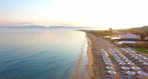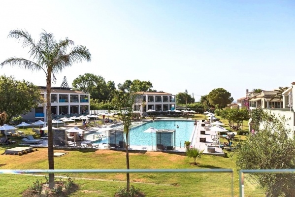 A főépületből és több kisebb épületből álló szálloda szép kertekkel körülölelt, csendes helyen, közvetlenül a leghosszabb homokos/kavicsos tengerparton fekszik. Acharavi falu, számos tavernával, bárral és üzlettel gyalog kb. 10 perc alatt elérhető. Acharavi közelében található a Hydropolis vízipark, amely felnőttek és gyermekek számára is kitűnő szórakozást kínál.