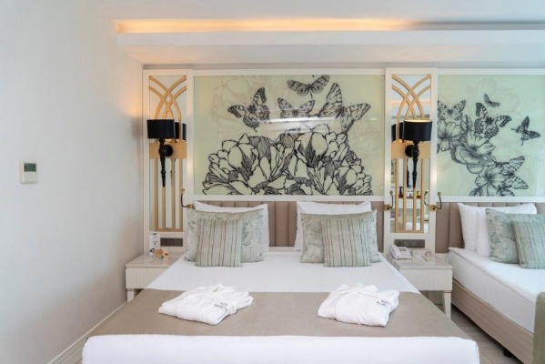 - Ultra All Inclusive: Reggeli, ebéd és vacsora büférendszerben, késői reggeli, napközbeni snackek, éjjeli mini büfé (22:30-07:00), kávé/tea/sütemények, gözleme, fagylalt és gofri bizonyos időpontokban, helyi és néhány import alkoholos és alkoholmentes ital a 24 órájában, minibár naponta vízzel, üdítőkkel és sörrel feltöltve, 4 a'la carte étterem (török, olasz, ázsiai, mexikói a tartózkodás során 1 alkalommal, előzetes asztalfoglalással).