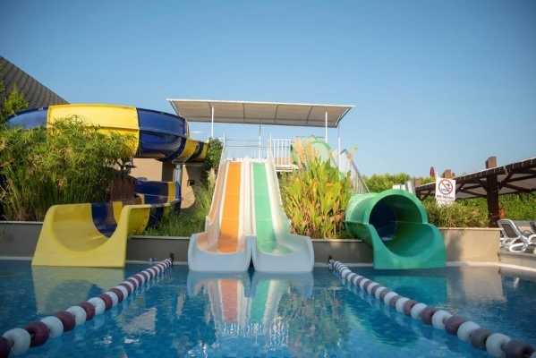 - Medence napozóágyakkal és napernyőkkel, fél olimpiai medence, hullámmedence, gyermekmedence, relax medence csak 18 éven felüli vendégeknek, beltéri medence (csak a téli hónapokban), aquapark 5 nagy, 3 közepes és 3 kicsi csúszdával, nappali és esti animációs programok, kéthetente különleges party, mini klub (4-12 éveseknek), mini disco, mini vidámpark (18:00-20:00) török fürdő, szauna, fitnesz terem, aerobic, vízi torna, asztalitenisz, darts, boccia, strandröplabda.A strandon napozóágyak, napernyők és strandtörölközők állnak a vendégek rendelkezésére.