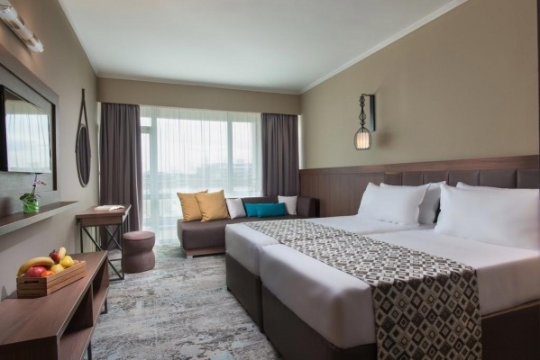 SZOBÁK: 340 szoba o erkély o központi légkondicionálás o hajszárító o TV o telefon térítés ellenében o széf térítés ellenében o hűtőszekrény o vízforraló (kérésre) o wifi o economy szobák francia erkéllyel: 24 m?, max. 2+1 fő részére o standard szobák: 28 m?, max. 2+2 fő részére