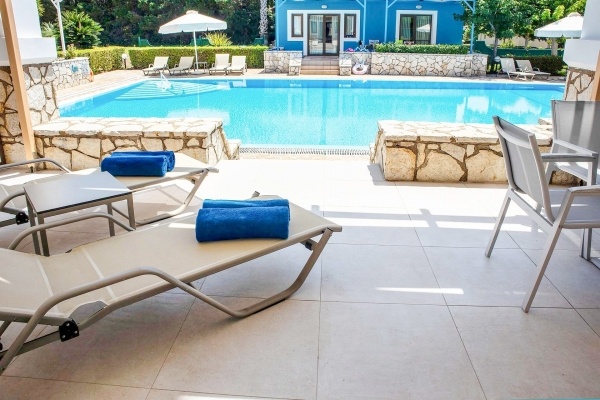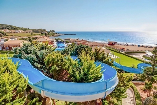- több medence (az egyik csúszdával), napágyak, napernyők és törölközők ingyenesen
