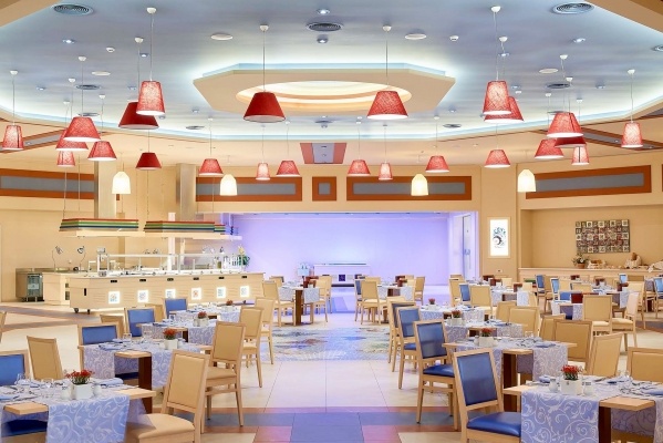 - All Inclusive Dine Around: minden étkezés büférendszerben, érkezéskor alkoholmentes italok (gyümölcslevek, víz, bor), valamint naponta kávé/tea a szobában, snack-étterem 11:00 és 18:00 óra között, pool-/strandbár 10:00 és 18:00 óra között, bár és lounge-bár 18:00 és 24:00 óra között, vacsorázni 1x az a'la carte-étteremben is lehetséges 19:00 és 24:00 óra között, (előzetes foglalás szükséges), helyi alkoholos és alkoholmentes italok az egyes bárok nyitvatartása szerint 10:00 és 24:00 óra között, 20% kedvezmény az a'la carte-étteremben, 20% kedvezmény a wellness-kezelésekre (előzetes foglalás szükséges a recepción - belépés csak 16 éves kortól), 50% kedvezmény a borlapon szereplő borokra az a'la carte-étteremben, tartózkodásonként 1x 1 óra ingyenes vízi sportolási lehetőség (érdeklődni a hotel recepcióján kell), a vendégek a Sympossio és az Olympia éttermet is igénybe vehetik. Az étkezéseknél alkalomhoz illő viselet ajánlott.