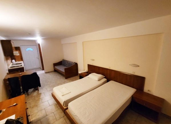 Szobák: Minden stúdió (1-3 fős) egy hálószobás, egyszerűen berendezett, konyhasarokkal (benne: hűtővel, vízforralóval) és fürdőszobával (zuhanyzó) felszerelt.
