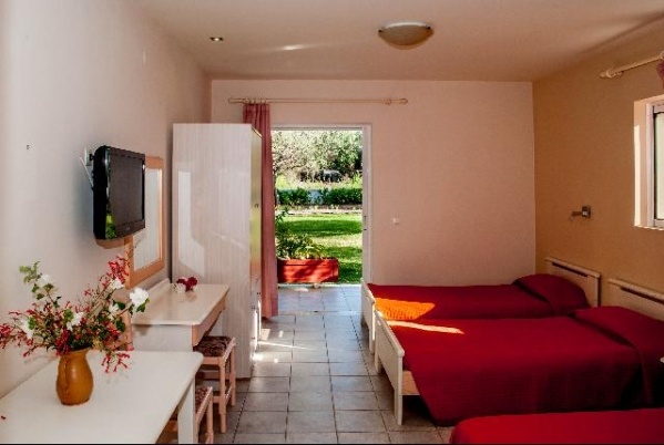 Lassi település központjától kb. 200 m-re épült, kétszintes, 11 szobás apartmanház szépen rendezett kerttel, növényekkel, fákkal, virágokkal körülvéve. A legközelebbi tengerpart, a közkedvelt Makris Gialos beach kb. 250 m-re található. A közelben tavernák, kávézók, vendéglők, üzletek találhatók (kb. 250 m).