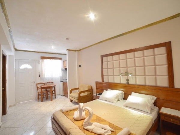 2-3 fős stúdiók, és 4 fős két hálószobás apartmannok, a földszinten, az első és a második emeleten. A legtöbbjük saját erkélyéről medencére vagy kertre nyílik a kilátás. Minden stúdióhoz és apartmanhoz saját fürdőszoba zuhanyzóval,konyhasarok, hűtőszekrény, kenyérpirító, vízforraló, műholdas TV, légkondicionálás, szobaszerviz, széf, telefon.