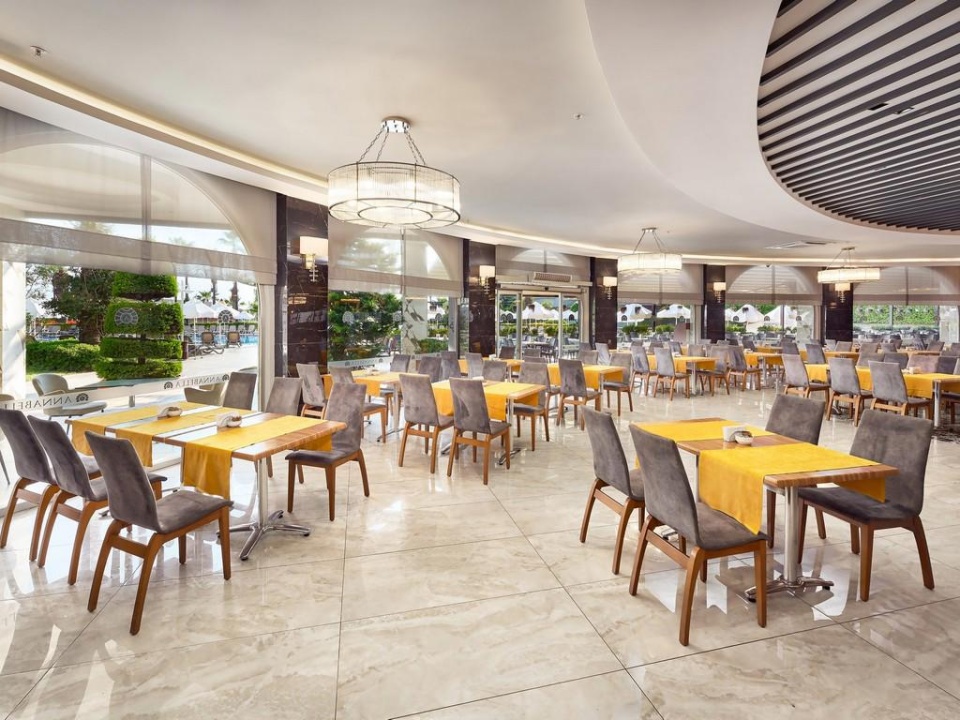 ELLÁTÁS: all inclusive • svédasztalos reggeli, ebéd és vacsora • késői reggeli • délutáni és éjszakai snackek • fagylalt • à la carte étterem (tenger gyümölcsei, török konyha) – tartózkodás alatt 1 alkalommal, előzetes foglalással • helyi alkoholos és alkoholmentes italok 10:00–01:00 között • minibár