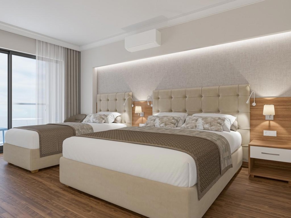 SZOBÁK: összesen 229 szoba • erkély • egyénileg szabályozható légkondicionálás • hajszárító • telefon térítés ellenében • TV • minibár (érkezéskor üdítőkkel feltöltve) • széf • vízforraló • kávé- és teakészítő szett • wifi térítés ellenében • standard szobák: max. 2+2 vagy 3+1 fő részére, kilátás a tájra vagy a tengerre • családi szobák: max. 4 fő részére, két szoba összekötve ajtóval