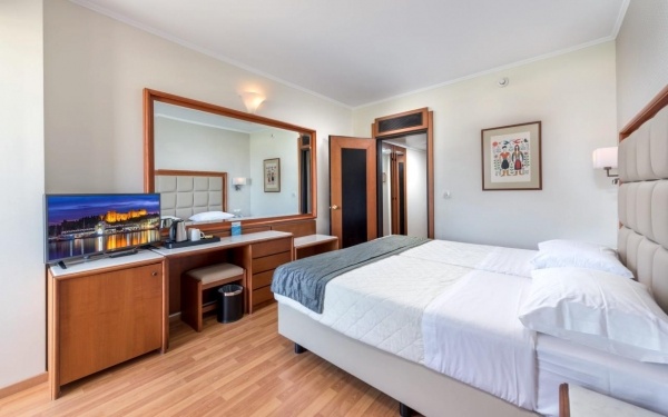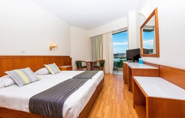 Szobák: minden szoba szépen berendezett, egyhálószobás (kb. 22 m2), légkondicionált, fürdőszobás, Tv-vel, hajszárítóval, minihűtővel, vízforralóval (tea és kávékészítési lehetőség), felszerelt. A szobákhoz erkély tartozik oldal tengerre néző kilátással. Felár ellenében széfbérlés (2.5 euró/nap) a helyszínen igényelhető.