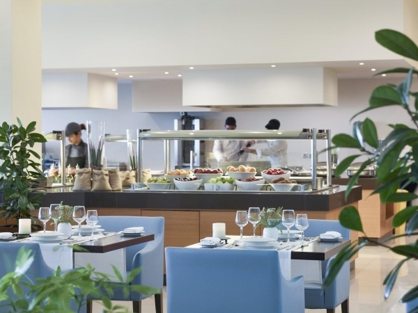 - Félpanzió vagy All Inclusive. All Inclusive: minden étkezés büférendszerben, reggeli későn kelőknek 07:00 és 10:00 óra között, snack-ételek 11:00 és 12:00 óra, valamint 22.00 és 23:30 óra között, fagylalt 11:00 és 18:00 óra között, snack-ételek, pizza, kebab, szuvlaki, gofri 11:30 és 17:30 óra között, a minibárba érkezéskor vizet és üdítőt készítenek be, helyi alkoholos és alkoholmentes italok 09:30 és 24:00 óra között, tartózkodásonként 1x vacsora az a'la carte-tavernában 19:30 és 23:00 óra között (előzetes foglalás szükséges), tartózkodásonként 1x a szauna és a jacuzzi használata ingyenesen (csak 15 éven felülieknek). A vacsoránál alkalomhoz illő viselet ajánlott. Az All Inclusive szállodák szolgáltatásai bizonyos részletekben szállodánként eltérhetnek.