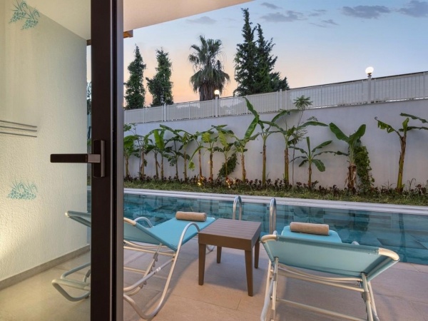 o Swim-up szobák: 33 m?, max. 2 fő, 1 hálószoba és 1 nappali, közvetlen medencekapcsolattal