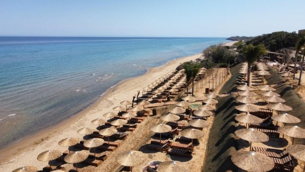 - homokos part az Aspro Krino Dunes testvérszállodánál (kb. 50 m-re, vízbe lépve kavicsos)