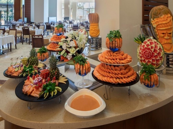 ELLÁTÁS: ultra all inclusive o svédasztalos reggeli, ebéd és vacsora o késői reggeli o speciális diétás menü o vegetáriánus menü o délutáni és késő esti snackek o késői vacsora o kávé, tea és sütemények o fagylalt o ? la carte étterem egyszeri látogatás a tartózkodás alatt, előzetes foglalás szükséges o minden helyi és egyes import alkoholos és alkoholmentes ital o minibár (érkezéskor üdítőkkel feltöltve)