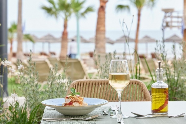 Étkezés: Félpanzió, büfé reggelivel és vacsorával. Friss gyümölcsök, pékáruk, hideg és meleg fogások, tojásételek, zöldségek, joghurtok és különféle italok - kávé, tea, friss gyümölcslevek - teszik teljessé a kínálatot. A vacsora is büfé formában zajlik, amely a nemzetközi és helyi ízek változatos kombinációját nyújtja. A vendégek helyi ciprusi specialitásokat is kóstolhatnak, valamint élvezhetik a tematikus estek változatos fogásait. Az all inclusive ellátás magában foglalja a napi három főétkezést - reggelit, ebédet és vacsorát -, amelyek büfé formában érhetők el, nemzetközi és helyi ízek változatos kombinációját kínálja. Az étkezések mellé különféle italokat kínálnak, beleértve a helyi alkoholos italokat, borokat, valamint az alkoholmentes frissítőket is, amelyeket a korlátlanul fogyaszthatnak a vendégek 10-24 óra között. A vendégek emellett több bár közül választhatnak, ahol széles italválasztékot kínálnak. Az italválaszték a szálloda által meghatározott az itallapokon ALL jelöléssel található. Mind a reggeli, ebéd és vacsorák során kiemelt figyelmet fordítanak az ételek minőségére, frissességére, és igyekeznek minden ételallergiát vagy diétás igényt is kielégíteni. Napközben snackek és könnyű hideg és meleg ételek is elérhetők, valamint jégkrémek, kávé és sütemények a délutáni órákban.