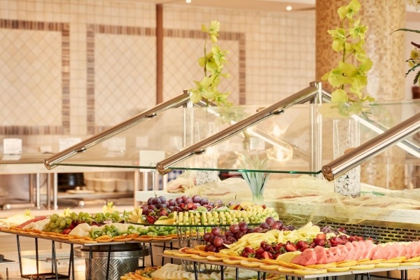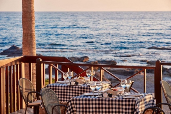 Étkezés: félpanzió, bőséges svédasztalos reggelivel (friss pékáruk, gyümölcsök, hideg és meleg ételek, tojásételek, sajtok, felvágottak, reggeli italok és gyümölcslevek) és büfé vacsorával. A vacsorára a helyi ciprusi specialitásoktól kezdve a mediterrán fogásokon át nemzetközi kedvenceket is felszolgálhatnak. Különleges étkezési igényekre, mint vegetáriánus vagy gluténmentes ételek, szintén rendelkezésre állnak. Felár ellenében all inclusive ellátás foglalható, benne: reggeli, ebéd és vacsora, széles ételválasztékkal, melyek között megtalálhatóak helyi ciprusi és mediterrán ételek, friss tengeri fogások és nemzetközi ínyencségek. Az ebédet a medence melletti étteremben szolgálják fel, ahol könnyű és friss ételek, mint például saláták, grill ételek és tésztafélék kerülnek az asztalra. Napközben frissítő snackeket kínálnak, mint például könnyű harapnivalók, fagylaltok, sütemények és gyümölcsök, amelyek a medence mellett vagy a bárokban érhetők el. Az all inclusive ellátás része a korlátlan alkoholos és alkoholmentes italok fogyasztása 10-24 óra között. A helyi borok, sörök, koktélok és frissítők egész nap rendelkezésre állnak. A bárban este koktélok, frissítő limonádék és különféle italok várják a vendégeket (az italválaszték a szállodai itallapon található ,,AL" jelzéssel).