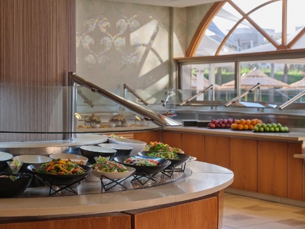 Étkezés: all inclusive ellátás, magában foglalja a napi három főétkezést - reggelit, ebédet és vacsorát -, amelyek büfé formában érhetők el, nemzetközi és helyi ízek változatos kombinációját kínálja. Az étkezések mellé különféle italokat kínálnak, beleértve a helyi alkoholos italokat, borokat, valamint az alkoholmentes frissítőket is, amelyeket a korlátlanul fogyaszthatnak a vendégek 10-23 óra között. A vendégek emellett több bár közül választhatnak, ahol széles italválasztékot kínálnak. Az italválaszték a szálloda által meghatározott az itallapokon ALL jelöléssel található. Mind a reggeli, ebéd és vacsorák során kiemelt figyelmet fordítanak az ételek minőségére, frissességére, és igyekeznek minden ételallergiát vagy diétás igényt is kielégíteni. Napközben snackek és könnyű hideg és meleg ételek is elérhetők, valamint jégkrémek, kávé és sütemények a délutáni órákban.