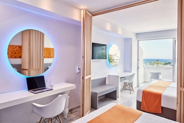 Szobák: minden standard szoba modern, szépen berendezett és kényelmes kialakítású, egy hálószobás (~20 m?) légkondicionált, fürdőszobás, hajszárítóval, síkképernyős tv-vel, minihűtővel, vízforralóval (tea és kávékészítési lehetőség) és telefonnal felszerelt. A szobához erkély tartozik szárazföldre, oldalt tengerre néző vagy tengerre néző kilátással. A szuperior szoba berendezése a standard szobáéhoz hasonló, több kényelmi szolgáltatást kínál, mint például fürdőköpenyt, papucsot, privát erkélyt és oldalsó tengerre néző kilátást. A deluxe szobák a szálloda csak felnőtt vendégeket fogadó épületszárnyában találhatók (16+), felszereletségük a szuperior szobáékkal azonos, a "swim up" szobákból közvetlen medencekapcsolattal rendelkeznek. Minden szobához erkély tartozik szárazföldre, oldalt tengerre néző vagy tengerre néző kilátással. A prémium szoba berendezése még szebb, nagyobb alapterületű(~24 m?), több kényelmi szolgáltatást kínál, mint például kapszulás kávégép (napi kapszulafelöltéssel) azonban ezekhez a szobákhoz nem tartozik erkély. A családi szobák modern stílusban vannak berendezve, és ~24-26 m? alapterületűek. A családi szobákban max. 4 fő számára biztosított az elhelyezés: egy franciaágy és egy vagy két különálló ágy áll rendelkezésre. A családi szobához erkély tartozik szárazföldre vagy medencére néző kilátással. A családi szobában tolóajtóval elválasztott belső tér található, amely ideális gyermekekkel érkező családok számára. Minibár és széf térítés ellenében.