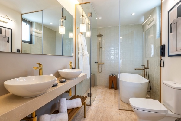 - Grande-suitek - egy nagy szoba, tágasabbak, a főépületben, a teraszról közvetlen kijárat a külön közös medencéhez, tengerre nézők