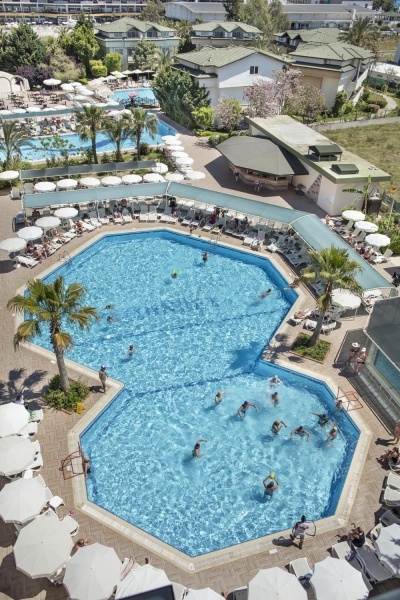 SZOLGÁLTATÁSOK: kültéri medencék napernyőkkel és napozóágyakkal o beltéri medence o vízicsúszdák o főétterem o bárok (lobby, medence, tengerparti) o napi és esti animációs programok o fitneszterem o darts o torna o aerobik o strandröplabda o vízi torna o asztalitenisz o vízilabda o gőzkabin o törökfürdő o szauna o wifi