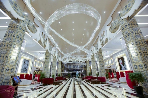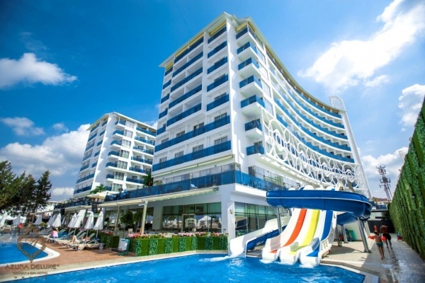 A 2015 májusában megnyílt Azura Deluxe Hotel a Török Riviéra alanyai régiójának egyik ikonikus épülete; magasló aranyszínű szobrai már messziről lenyűgözik, modern, pezsdítő színvilágban pompázó belső terei újfent ámulatba ejtik az ide utazót. Fordítson hátat néhány napra a rohanó hétköznapoknak és élvezze a török vendégszeretetet ebben a csodás szállodában! Az 5 csillagos hotel az antalyai repülőtértől 98 km-re, Alanyától 22 km-re, Incekum üdülőhelyen terül el közvetlenül homokos-kavicsos strandján. A tengerben kisebb-nagyobb kövek és sziklák előfordulhatnak, ezért fürdőcipő használata javasolt. A környező városokba és Alanya központjába taxival vagy dolmussal könnyedén bejuthatunk.