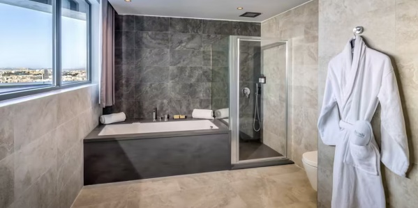 Teljesen felszerelt fürdőszobával rendelkeznek, amelyben kád, zuhanyzó, fürdőköpeny, papucs, hajszárító, minibár, ingyenes Wi-Fi és extra nagy terasz található.