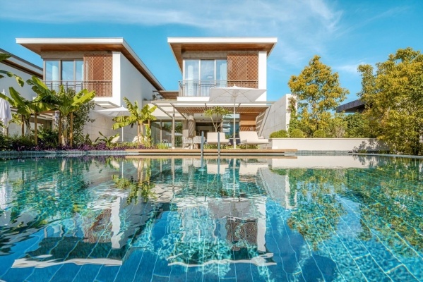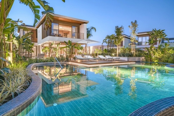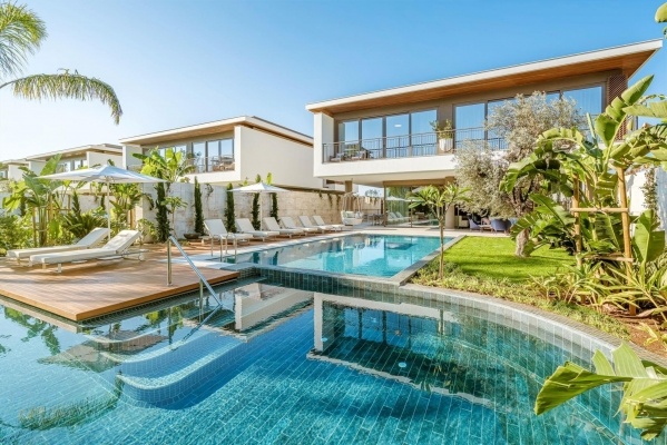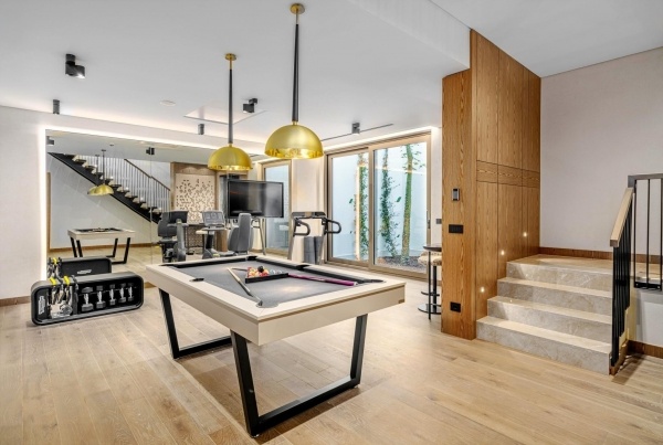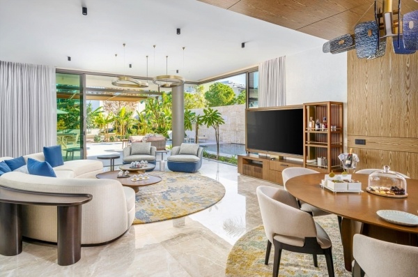 - Villák - 3 hálószoba, háromszintesek, a földszinten nappali konyhával, hálószoba fürdőszobával, terasz és közvetlen kijárat az optikailag elválasztott közös medencéhez, az emeleten 2 hálószoba, 2 fürdőszoba és gardrób, az alagsorban fitneszterem (edző térítés ellenében), törökfürdő (kezelések térítés ellenében), masszázsszalon (masszázs térítés ellenében), szauna és biliárdasztal, ingyenes concierge-szervíz, összesen kb. 693 m2