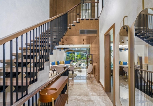 - Villák - 4 hálószoba, háromszintesek, a földszinten nappali zongorával (privát zongoraoktatás külön kérésre és térítés ellenében) és egy konyha, hálószoba, fürdőszoba és gardrób, a teraszról 2 közvetlen bejárat 2 medencéhez (tengervizes privát és édesvizű optikailag elválasztott közös), lift a többi emeletre, az emeleten 3 hálószoba, 3 fürdőszoba, gardrób és dolgozósarok, az alagsorban fitneszterem (edző térítés ellenében), törökfürdő (kezelések térítés ellenében), masszázsszalon (masszázs térítés ellenében), szauna és biliárdasztal, ingyenes concierge-szervíz, összesen kb. 983 m2