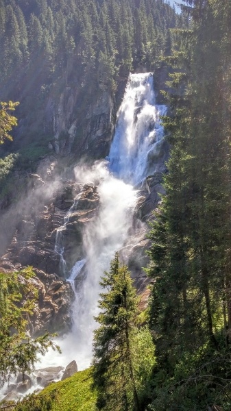 Továbbutazás Európa legnagyobb vízeséséhez a Krimml-vízeséshez. A 380 méterről lezúduló vízesés 3 nagyobb szakaszból áll. A túra teljes hossza kb. 8 km, szintkülönbség kb. 500 méter. A túra során 11 kilátópontból csodálhatjuk meg a tájat.