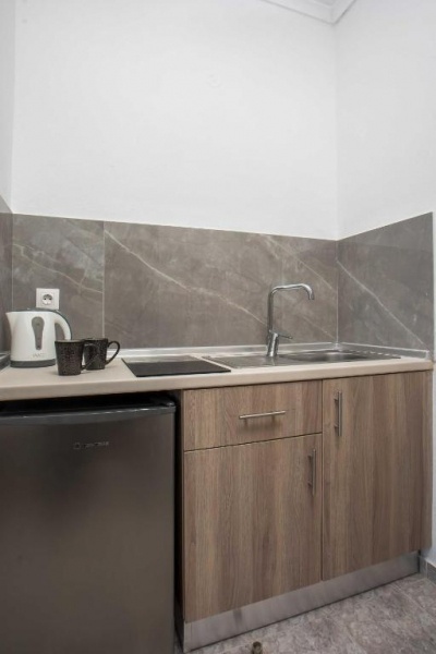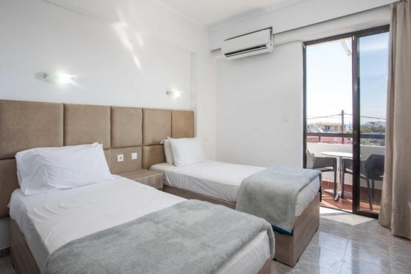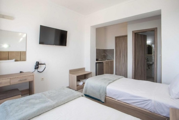 Az apartmanház egyszerűen, de kényelmesen berendezett stúdiókkal rendelkezik. A szobák légkondicionáltak (térítés ellenében), egy légterűek, saját fürdőszobával, hajszárítóval, televízióval, konyhasarokkal (főzőlap, hűtőszekrény, alapvető konyhai eszközök), valamint széffel (térítés ellenében) felszereltek. A stúdiókhoz erkély vagy terasz tartozik, kilátással a kertre vagy a környékre.