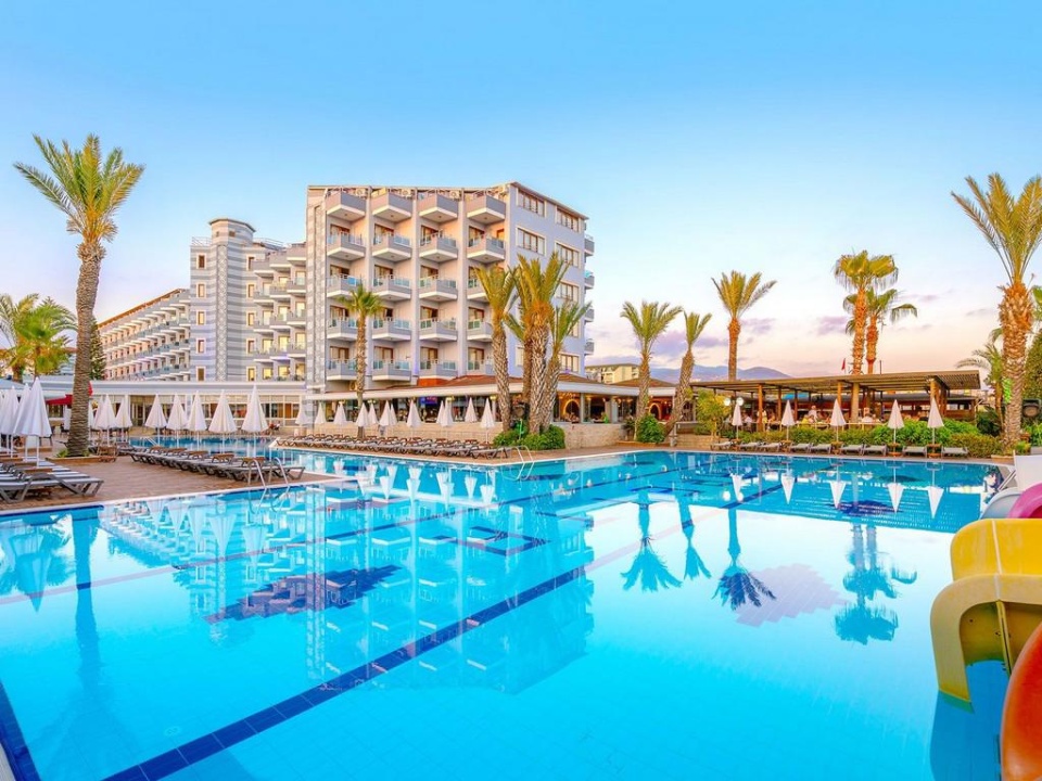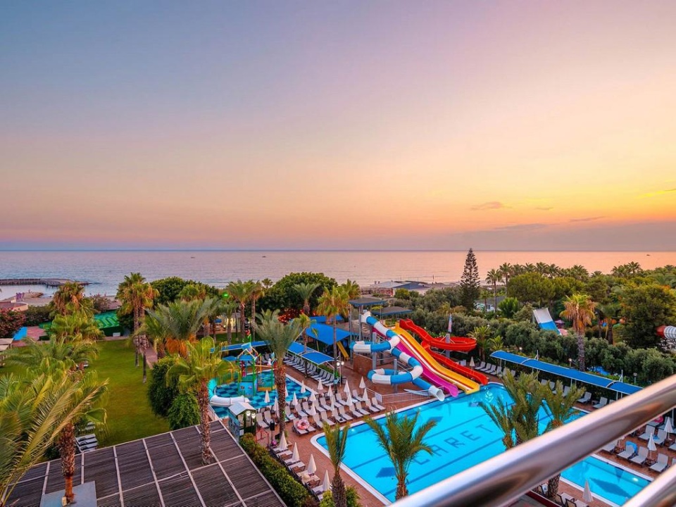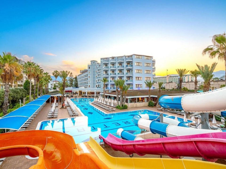 SZOLGÁLTATÁSOK: napernyőkkel és nyugágyakkal ellátott medence • csúszdák • 24 órás recepció • főétterem • bárok (medence, tengerpart, snack) • animációs programok • amfiteátrum • diszkó • fitnesz • darts • asztalitenisz • strandröplabda • vízilabda • aerobik • vízi torna • törökfürdő