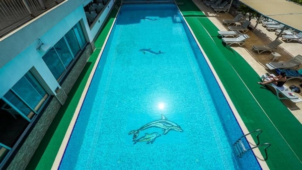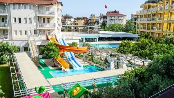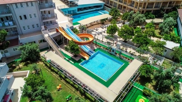 SZOLGÁLTATÁSOK: napernyőkkel és napágyakkal ellátott medence o vízicsúszdák o főétterem o bárok o könnyed animációs programok o wifi a lobbyban