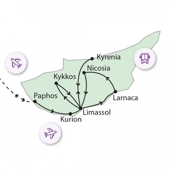Reggeli és a szállodából kicsekkolás. Első megállónk az ókori romváros, Kurion, mely egykor virágzó görög-római település volt. Itt található egy, a mai napig működő görög-római színház és az Eustolius háza a korábbi nyilvános fürdő maradványaival. Utunkat folytatjuk Paphos fele. Útközben rövid megállót tartunk Aphrodité legendás szülőhelyénél, a Petra tou Romiou-nál. A monda szerint az istennő itt lépett ki a habokból, és amerre járt, lába nyomán csodás növények, fák nőttek ki a földből. Ezután Geroskipouban meglátogatjuk a Agia Paraskevi bizánci templomot, amely a IX. században épült. Következő megállónk Paphos, ahol először felkeressük Szent Pál oszlopát, ahová - a legenda szerint - az apostolt kikötözték, és 39 korbácsütést mértek rá, mert keresztény módon imádkozott. Ezután megállónk Paphos történelmi városában, mely Európa Kulturális Fővárosa is volt. Archeológiai parkja az UNESCO Világörökség részét képezi. Láthatjuk többek között a Dionüszosz római villában gyönyörű állapotban megmaradt mesés padlómozaikokat. Transzfer a repülőtérre, majd onnan menetrend függvényében várhatóan délután szállunk fel.