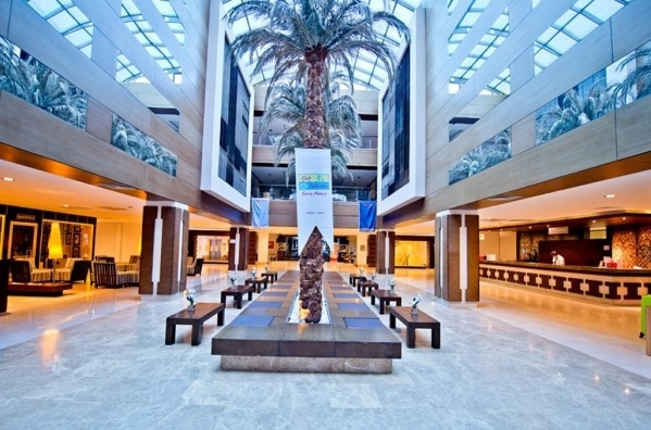 - All Inclusive: minden étkezés büférendszerben, éjféli snack-ételek 23:30 és 00:30 óra között, kávé, tea és palackozott üdítők reggelinél, üdítők, sör, bor és egyes helyi alkoholos italok ebédnél és vacsoránál, gyermekbüfé, gyermeksarok, helyi alkoholos és alkoholmentes italok a lobby-bárban, a Palmiye bárban és a pool-bárban 10:00 és 24:00 óra között, a strandbárban 10:00 és 18:00 óra között, a Sky-bárban 19:00 és 24:00 óra között, snack-ételek a pool-bárban és a strandbárban 12:00 és 15:00 óra között, gözleme 12:00 és 15:00 óra között, kávé és kekszek 16:00 és 17:00 óra között, vacsorázni tartózkodásonként 1x a hal és olasz a'la carte-étteremben is lehetséges 19:00 és 21:30 óra között (előzetes foglalás szükséges). Az All Inclusive szállodák szolgáltatásai bizonyos részletekben szállodánként eltérhetnek.