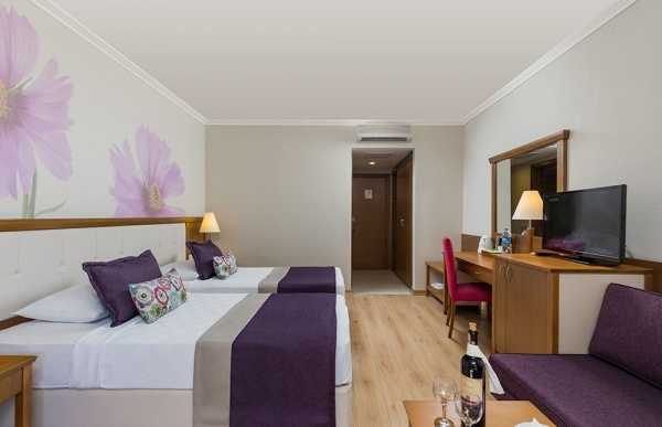 A kiváló minőségű, családbarát, 15 db kétszintes épületől álló szállodakomplexum 85 km-re fekszik az antalyai repülőtértől, 14 km-re Manavgat és 19 km-re Side központjától, ahova helyi járatú busszal (dolmus) vagy taxival is eljuthatunk. A szálloda közvetlen a homokos, aprókavicsos strand mentén helyezkedik el. Nyaralásunk során mindenképpen érdemes elmerülnünk a bazárok széleskörű kínálatában, felfedezhetjük Side antik romvárosát, vagy csak élvezzük a szálloda számtalan szolgáltatását! Side ókori romvárosa, valamint Manavgat turisztikai központja a szálloda saját üzemeltetésű shuttle járatával (díj ellenében) könnyedén elérhető.
