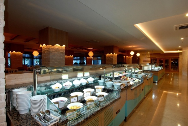 - Ultra All Inclusive: minden étkezés büférendszerben, kávé, tea, friss gyümölcslevek és üdítők reggelinél, üdítők, sör, bor és egyes alkoholos italok ebédnél és vacsoránál, a bisztróban snack-ételek és italok 15:00 és 07:00 óra között, helyi és egyes import alkoholos és alkoholmentes italok a lobby-bárban és a pool-bárban 10:00 és 24:00 óra között, a strandbárban 10:00 és 18.00 óra között snack ételek a strandbárban 14.00 és 17:00 óra között, fun-bár 10:00 és 17:30 óra között, diszkó 23:00 és 02:00 óra között, cukrászda 10:00 és 18:00 óra között, vacsorázni tartózkodásonként 1x az a'la carte-étteremebn is lehet 19:00 és 21:00 óra között (hal és mediterrán, előzetes foglalás szükséges). Az étteremben alkalomhoz illő vislete ajánlott (férfiaknak hosszúnadrág).