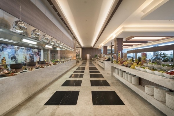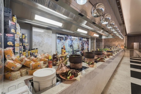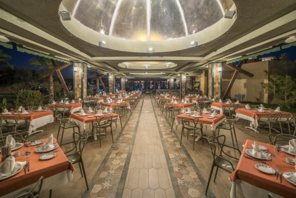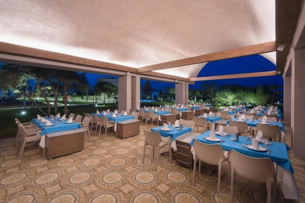 Ellátás: ultra all inclusive ellátás, benne: svédasztalos reggeli (07:00-10:00), késői reggeli (10:0-11:00), svédasztalos ebéd (12:30-14:30), svédasztalos vacsora (18:30-21:30) és éjjeli vacsora (00:00-02:00), könnyű grill ételek, pizzák és tésztafélék a snack étteremben (12:00-16:00), korlátlan és térítésmentes italfogyasztás az étkezések és a szálloda legtöbb bárjában, az italválaszték a szálloda által meghatározott helyi és import prémium márkás alkoholos, alkoholmentes italokra és koktélokra is vonatkozik azonban a palackozott italokra és a frissen facsart gyümölcslevekre nem alkalmazható. Sütemények, kávé és tea fogyasztása a lobby bárban (16.30-18.30), jégkrémek, csúszdapark használata (7 különböző csúszda, 10:00-12:00 és 14:00 -17:30 között), Wi-Fi internetkapcsolat, a sportpályák használata, darts, asztalitenisz, fitneszterem, fedett medence, törökfürdő, szauna és gőzfürdő használata. A megjelölt időpontokon kívül illetve a szálloda egyes bárjaiban és a tematikus éttermeiben a fogyasztás, térítés ellenében.