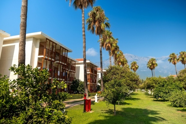 A főépületből és 2-3 emeletes villákból álló szálloda egy dús növényzetű kertben helyezkedik el, Kemer központjának közelében, közvetlenül a gyönöyrű strandon. A létesítmény egyik oldalán a lenyűgöző hegyek, a másik oldalon a gyönyörű, mélykék Földközi-tenger látványa tárul elénk. Vízisúszdák, fitneszterem és animációs programok garantálják a tökéletes kikapcsolódást.