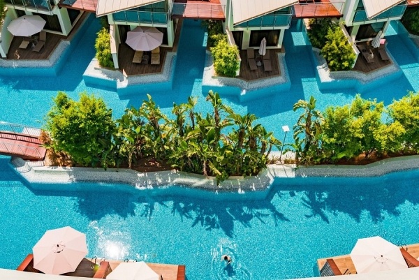 - A tóparti családi szobák 80 nm alapterületűek, két hálószobából és két fürdőszobából állnak, a teraszról közvetlen medencekapcsolattal rendelkeznek.