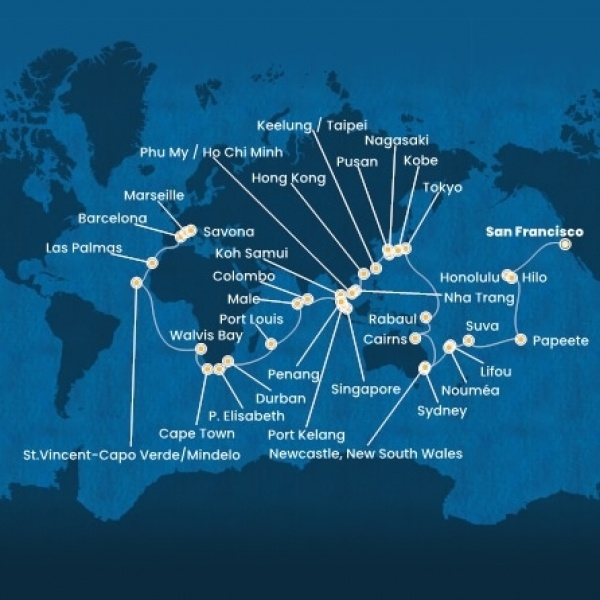 | 15. nap | Papeete (Francia Polinézia) | 09:00 | 19:00 |