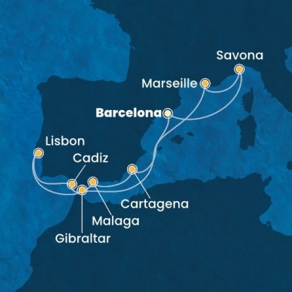 | 12. nap | Barcelona (Spanyolország) | 07:00 |