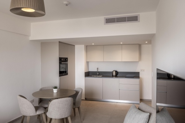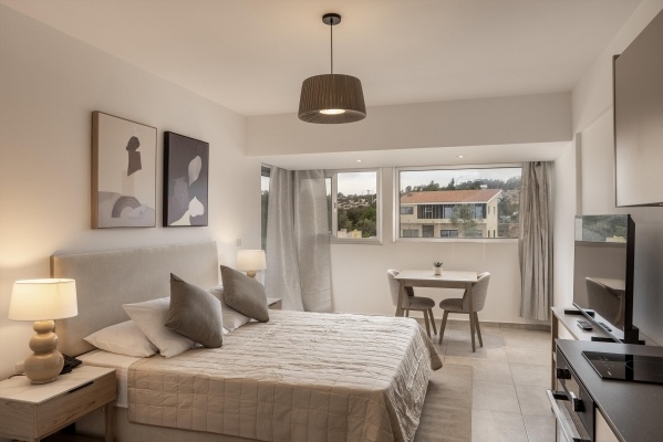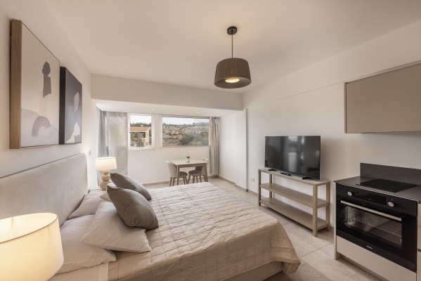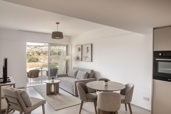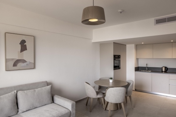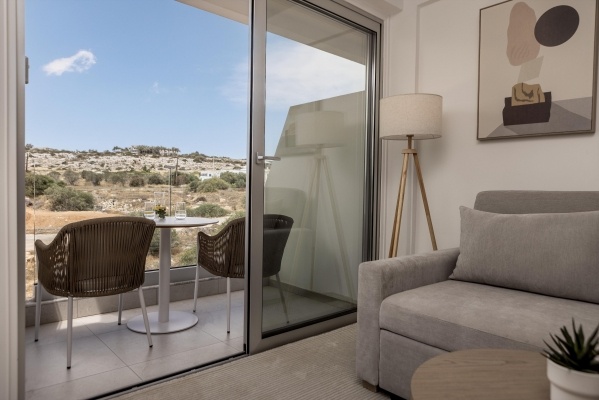 - Suitek - külön hálószoba, nappali konyhasarokkal és kanapéval, tengerre nézők