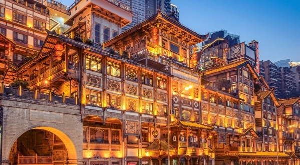 Reggeli után gyorsvonattal Chongqingbe utazunk. Érkezésünk után először az ősi, hangulatos Cigikou negyed utcáin sétálunk, ahol a hagyományos kézműves üzletek és teaházak idézik fel a város múltját. Este a látványosan kivilágított, 11 emeletes Hongya-barlang épületegyüttesét tekintjük meg, amely Chongqing egyik ikonikus látványossága. A különleges építmény teraszairól gyönyörű kilátás nyílik a folyóparti város fényeire. Este szállásunkra megyünk.