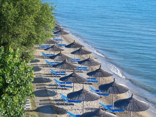 A három épületből álló szállodakomplexum egy szépen gondozott kertben, közvetlenül a hosszú, durva homokos/kavicsos strand mellett található. Tökéletes helyszín egy pihentető nyaralásra. Moraitika központjának közelében fekszik, ahol a part mentén különböző tavernák, bárok és üzletek várják a vendégeket. Minden korosztály számára ajánljuk.