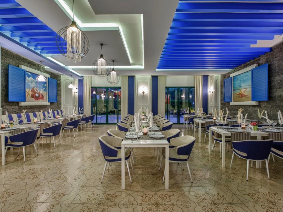 Recepció, lobby, főétterem, á la carte étterem (előzetes foglalás szükséges), bár, , kert, orvosi ügyelet, mosoda, üzletek, játékszoba 24 órás szobaszerviz (térítés ellenében).