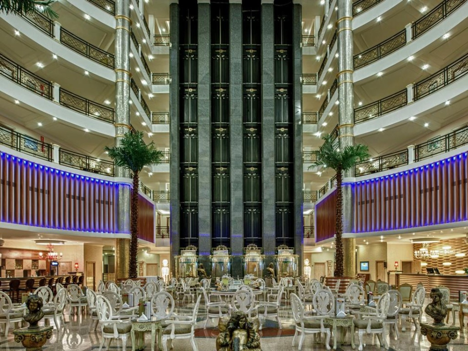 A kiváló üdülési lehetőséget kínáló szállodánk egy hatemeletes épületből (416 standard szoba) és egy hétemeletes melléképületből (79 családi szoba és 3 standard szoba) áll. A főépületben 4 panorámalift, a melléképületben pedig 3 lift található. A lobby emeletén található a recepció, a zongorabár élőzenével, a Delphin Cafe & Bar és a vásárlási üzletek.