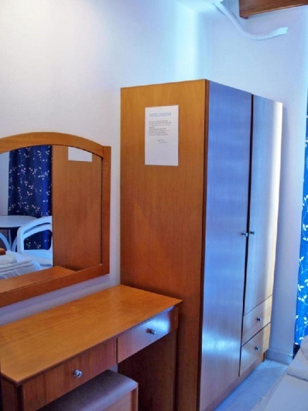 Szobák: minden szoba egyhálószobás (kb. 16 m2), szépen és igényesen berendezett, modern fürdőszoba (tusoló és wc), légkondicionálóval (térítés ellenében) és hűtővel felszerelt. A szobákhoz balkon tartozik utcai vagy szárazföldre néző kilátással. 3. fő pótágyon lekérésre foglalható. A szoba kis alapterülete miatt, a pótágy elhelyezésével a szoba szűkössé válhat.