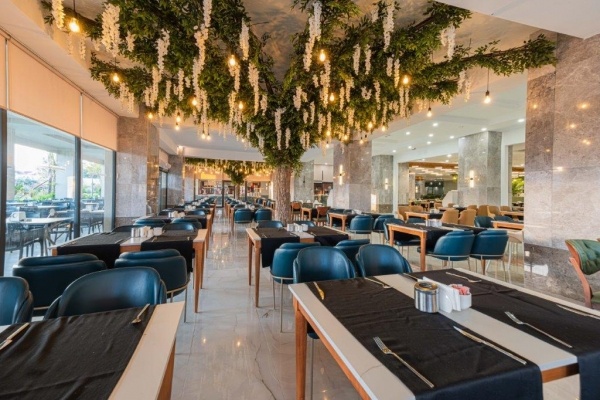 • All Inclusive: Reggeli, ebéd és vacsora büférendszerben, késői reggeli, éjféli leves (23:00-23:30), korai mini reggeli (00:00- 06:00), gyermekbüfé a főétkezéseknél, napközbeni snackek, kávé/tea és sütemények, gofri és fagylalt bizonyos időpontokban, helyi alkoholos és alkoholmentes italok (10:00-24:00), minibár naponta vízzel feltöltve, 3 a'la carte étterem (tartózkodás során egy alkalommal, előzetes asztalfoglalással).