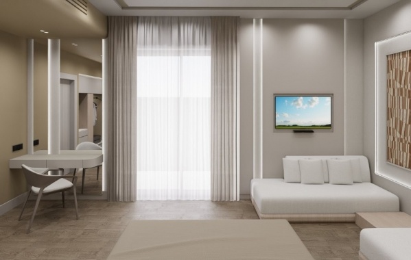 - A 217, elegáns szoba mindegyike 25-28 nm-es, központi légkondicionálóval, műholdas TV-vel, telefonnal, bérelhető széffel, WiFi elérhetőséggel, minibárral, vízforralóval, hajszárítóval és erkéllyel felszerelt. Franciaágy és 2 kanapéágy áll a vendégek rendelkezésére.
