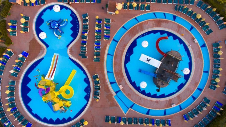 Gyermekmedence, vízicsúszdák, játszótér, miniklub (4-12 éves korig az Eftalia Island területén).