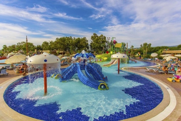 SZOLGÁLTATÁSOK: medencék napernyőkkel és napágyakkal o külön medence felnőtteknek o csúszdák o főétterem o bárok (lobby, medence, strand stb.) o cukrászda o nappali és esti animációk o élőzene o diszkó o amfiteátrum o strandröplabda o darts o aerobik o vízi torna o asztalitenisz o kosárlabda o TV-sarok o szauna o törökfürdő o térítés ellenében: spa központ o masszázs o peeling o gőzfürdő o törökfürdő-kezelések o fodrászat o üzletek o mosoda o orvosi szolgálat o pénzváltó o teniszpálya o teniszpálya világítással és felszereléssel o futballpálya és világítás o biliárd o autókölcsönzés o vízi sportok a strandon o konferenciaterem